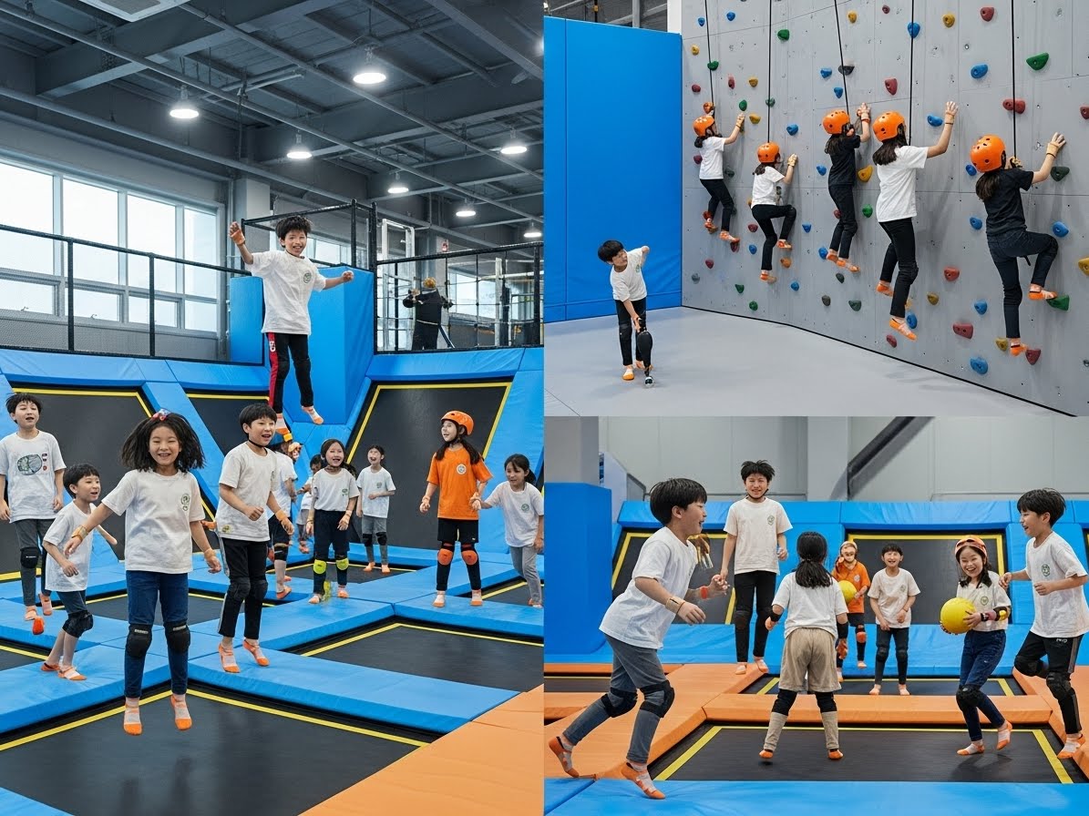 - 트램폴린 파크 & 실내 스포츠 시설: 실내에서도 안전하게 뛰놀며 에너지를 발산할 수 있습니다. 농구, 배드민턴, 축구 등 다양한 스포츠를 즐길 수 있는 복합 스포츠 센터도 좋은 선택이에요.